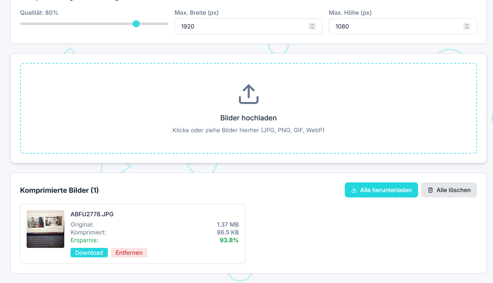 Bildkompressor, WebP-Converter, Farbpicker und mehr – alles auf einer Plattform.