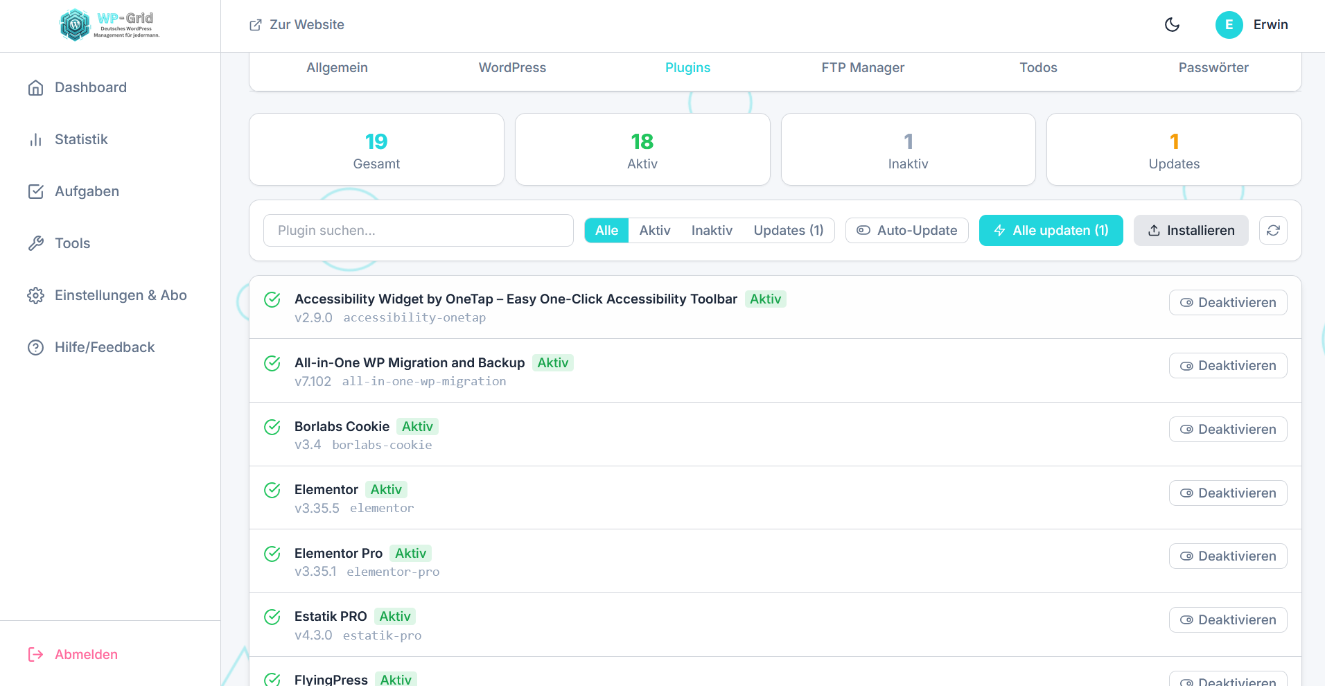 Behalte den Überblick über alle Plugins und Updates deiner WordPress-Seiten.