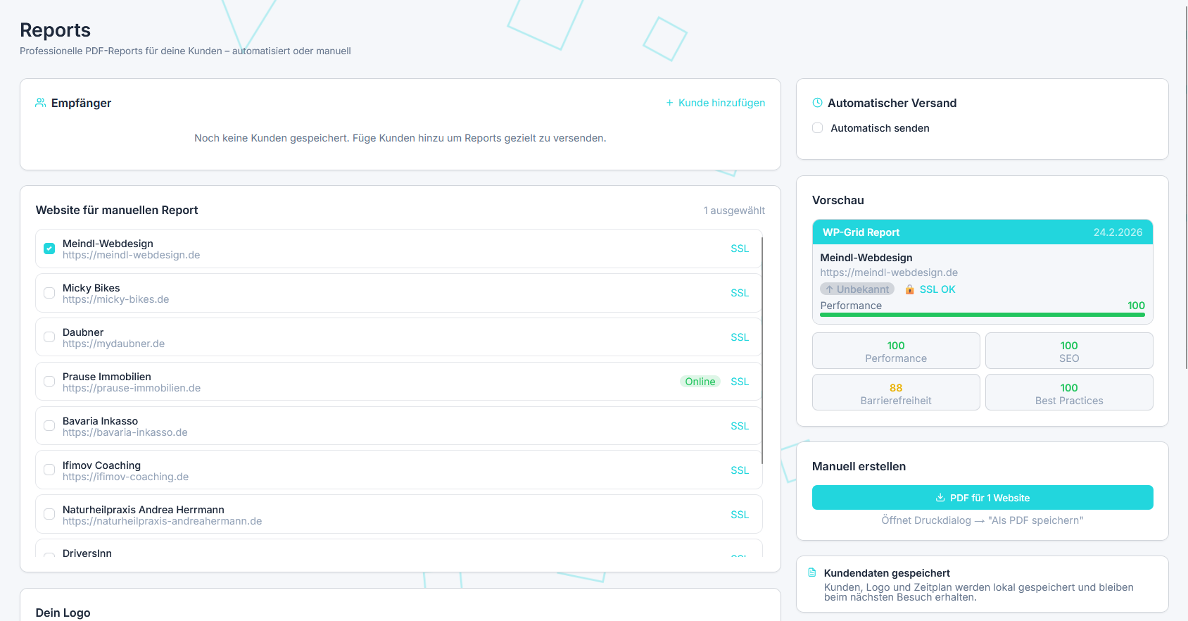 Hi, ich bin der Geschäftsführer von WP-Grid. Ich habe dieses Tool gebaut, weil ich als Webdesigner genau das gleiche Problem hatte: Zu viele Tabs, zu viele Logins, zu wenig Überblick.